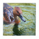 A beautiful duck swimming solo, perhaps looking for a tasty fish.