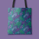 Carry the beauty of the ocean with you with this tote bag featuring a vibrant hand-drawn design of cartoon swimming fish and playful bubbles. With bold ocean-inspired hues of blue, purple, and green, this bag is perfect for sea-life lovers who adore unique and artistic patterns.