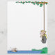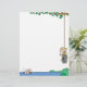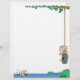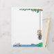This cute swimming hole letterhead has a boy in a tire swing hanging from a tree above a another boy swimming in the river.