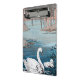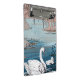 This mini clipboard has a vintage image of a beautiful white mother swan swimming in a blue lake with her white baby swan.
