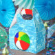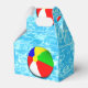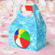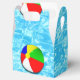 Fun pool party favours for guests, featuring a colourful beach ball floating in swimming pool. Add text to personalise.
