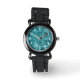 Add your own photo to create a unique wrist watch gift. Photo of light playing on the bottom of a swimming pool. The predominant colour is aqua more than blue.