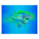 A digital painting of an endangered Hawaiian sea turtle swimming, painted in ocean blues and greens.