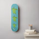 Modern beautiful swimming sea turtles and calligraphy on teal background Skateboard.
