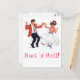 rock and roll dance invitation 1950s 1960s rock 'n' roll dancers A pair of rock 'n' roll or swing dancers. A girl wearing a poodle skirt, bobby socks, saddle shoes a pink t shirt and neckerchief and ribbon in her pony tail. A teddy boy with a DA haircut narrow black tie red jacket with black collar and trim, black trousers