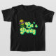 The t-shirt feels and looks great quality, a good thick cotton. It will be a little big for my son, but that means he will be able to wear it and not out grow it too soon. The print was as described on the order when personalised. True size, shape and colour T-shirt- thanks.