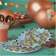 Kids who love animals, especially silly little monkeys will love these colourful and fun swinging monkeys paper plates as an addition to their birthday celebration! Features trees and vines with green leaves, three adorable brown monkeys, a blue sky, and a black decorative pattern edge.