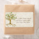 Matching mailing return address label for invitation envelopes. COLOR SELECTION: This design features orange, cream, tan, brown, chocolate brown and green. DESIGN: Modern off centre layout on this artwork for an elegant, formal yet somewhat rustic wedding invitation invite is hand water coloured by Audrey Jeanne Roberts. The background is an aged vintage style parchment, lighter on one side and in deeper tan tones on the reverse. The swirl tree has a heart in the centre of its trunk, its branches are swirls and at the end of each branch is a set of green leaves. Each leaf is a slightly different colour of green. On one side is the text of your wedding invitation which is easily customised and personalised via the template. On the other side your names and wedding date are on either side of the heart on the tree trunk.