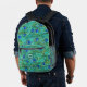Swirled Peacock Feather Pattern Monogram Printed Backpack