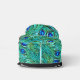 There's a fun modern swirled peacock feather pattern on this bag that is attractive for both kids and adults. Colours used include royal blue, green, and pale gold on a teal background. At the centre is your triple monogram in black, which is placed on an oval banner lined in black. Colourful!