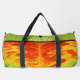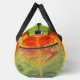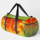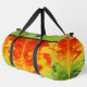 This vibrant Gear bag features a swirling abstract pattern in fiery shades of red, orange, yellow, and hints of green, creating a dynamic, flowing design. It's a distinctive Kit bag and a stylish Weekender for your travels.