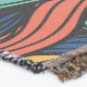 A quality printed throw has its advantages. This is a much finer weave throw than its loopier cousins, and though lighter, it is worth the investment for custom room accessorizing. The back is much prettier than the typical brown, and the fringe on the long sides very vivid, the selvage nicely done. Before photographing, I washed the throw in cold water, delicate, with a thicker woven throw the same size. On tumble dry low, this throw was dry in half the time as the other. This is a very practical quality if you use throws for furniture covers or to wrap up in frequently. The sleekness of the fabric makes it a great layer for accenting or protecting without the feeling of sitting on too much stuff. Perfect for napping or when you feel a light chill coming on. The color printing is beautiful and on this fabric, matched the design and color of my Photoshop image. This is an advantage for blending room fabrics and colors. The fringe on the short sides prints the colors from the design image and therefore varies from the side fringe. I streaked a white fractal line through the plaid pattern to give the illusion of weaving. This printed as crisp as an illusory thread, and put some white in the short side fringe, showing another advantage of print vs loomed- for artistic purposes, line lines, detail, and color integrity can be planned and preserved. My loomed throws have color limitations and more of a needlepoint texture. Print throws reproduce an exact image. The throw felt a little stiff straight out of the package, but this went away in the first delicate wash. Of course I searched the wash water for ink or bleeding and there was none.