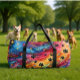 This colourful pattern duffle bag features a mesmerising swirling cosmic design in vibrant hues, liberally accented with classic black paw prints and twinkling stars. It's a unique and stylish pet accessory, perfect as a travel storage carrier for any pet lover.