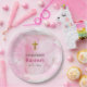Swirling & Twirling Pink Clouds Baptism Paper Plate