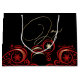 Gift Bag | Swirls and Snowflakes Red and Gold bottom border on a black background is a striking holiday ensemble. Large script calligraphy JOY on the front and a place for a name, text or just delete this option on the back - We chose a black background , you can choose another colour if you like - This is part of a mix and match Magical Unicorn Christmas Collection.
