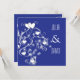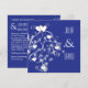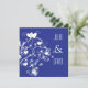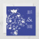Modern beautiful swirls & hearts on blue wedding invitation, fully customisable.