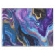 AI generated a paint-pour abstract with swirls of purple, blue, black, and gold. A great addition to your room decor.