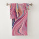 Swirls and Waves pink, gold, black, and blue bath towels.