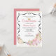 Swirly Black Frame Pink Floral Quinceanera Invitation