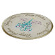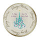 Beautiful charcuterie board with an original digital painting by Leslie Sigal Javorek of a swirly turquoise Christmas tree w/ violet ornaments on a Trompe L'oeil (trick of the eye) background illusion of fine bone china & greater depth. 2 custom text fields to personalise plate for a great gift.