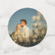 Romantic table confetti for wedding or engagement parties personalised with photos of the happy couple, your initials, and wedding date. One side of the small confetti pieces feature the word love in a swirly script.