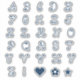 Fun navy blue colour font typography monogram text capital letters alphabet sticker pack for monogramming, personalising, customising, note writing, journals, notebooks, and more. This set also includes an exclamation point, heart, flower, and star.