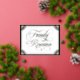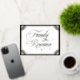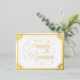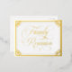 Gold foil postcard family reunion invitation with a swirly golden script inside an ornate gold foil frame. Add your family reunion invitation wording on the other side. Gold and white postcard family reunion invitation with elegant gold foil details.