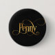 Swirly Script Calligraphy Penny Gold on Black 6 Cm Round Badge
