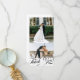 Thank you photo card for your wedding with two photos and Thank You written in a swirly black calligraphy script. Add a thank you note by hand on the other side which features faint grey lines.
