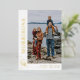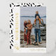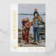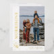 White and gold Christmas card personalised with a photo and your family name in a gold foil script next to the in a swirly script. Modern photo Christmas card in white with gold foil lettering.
