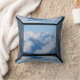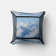 Pillow design using fun, reflective graphic art of clouds over the Swiss Alps.
