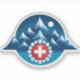 A bold, refreshed emblem inspired by the Swiss Alps, featuring stylized mountain peaks and a radiant Switzerland cross surrounded by crystal-like details. Designed for lovers of Switzerland, alpine landscapes, and clean geometric art.