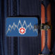 An illustration of the Swiss alps with a stylised Swiss flag in the middle.