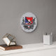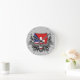 The clock did not take as long to arrive as I thought it might and was extremely well packaged. I didn't do the measurements so I didn't realize it is a little smaller than the average clock but that does not matter (just make sure you check if that's important to you).It is really nifty! It seems very solid and well made not flimsy at all. It has been going well and has kept good time in its few weeks on my wall. Nice product. Gets noticed too! Nicer in real life than the picture but true to the picture