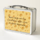 This is a standard metal lunchbox that appears to work just fine. We designed this box ourselves with an uploaded photo and custom text on the front and back. It looks absolutely beautiful except the front of the lunchbox is not centered like it shows in the photo. The print borders don't align with the inset flat part of the box where the preview photo online showed it perfectly centered in there. The back looks nice and centered though.