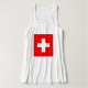 This design features the flag of Switzerland (officially the Swiss Confederation), which is a landlocked country in the middle of Europe. It is a federal republic, divided into 26 cantons; its capital city is Bern, while its largest city is Zurich. The country borders Germany to the north, Austria and Lichtenstein to the east, Italy to the south and France to the west. While most of the landmass is made up of the Alps, most of Swiss population lives on the plateau, where most major cities and economic centres are located, such as Zürich, Geneva and Basel. Switzerland has four official languages: German, French, Italian and Romansh, a less commonly spoken Romance language that is native to the country. The emblem of the Red Cross is the Swiss flag with switched colours.