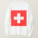 This design features the flag of Switzerland (officially the Swiss Confederation), which is a landlocked country in the middle of Europe. It is a federal republic, divided into 26 cantons; its capital city is Bern, while its largest city is Zurich. The country borders Germany to the north, Austria and Lichtenstein to the east, Italy to the south and France to the west. While most of the landmass is made up of the Alps, most of Swiss population lives on the plateau, where most major cities and economic centres are located, such as Zürich, Geneva and Basel. Switzerland has four official languages: German, French, Italian and Romansh, a less commonly spoken Romance language that is native to the country. The emblem of the Red Cross is the Swiss flag with switched colours.