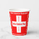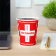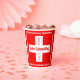 Celebrate Swiss National Day with these bold and bright August 1st paper cups, which feature the white cross of the Swiss national flag and "Happy Swiss National Day" in the four official languages of Switzerland. Reverse shows identical design.
