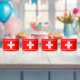 Celebrate Swiss National Day with this bold and bright August 1st stemless wine glass, which features the white cross of the Swiss national flag and "Happy Swiss National Day" in the four official languages of Switzerland. Reverse shows identical design.
