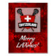 Swiss lacrosse logo design on a deep red Christmas background. Custom made lacrosse holidays / Christmas card with an original Game Face Gear design. Check my store for many more designs with a seasonal background! Great for all your sports mad family and friends.