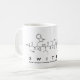 Swithin spelled out in amino acids as S W I T H I N (Serine Tryptophan Isoleucine Threonine Histidine Isoleucine Asparagine) on a mug for the scientist in you.