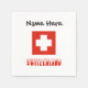 The Swiss Flag with the word SWITZERLAND underneath in snow-capped letters. The flag of Switzerland is a white square with a red cross in the centre. Above the flag is a place for your name, so you can personalise your look or create a customised gift.