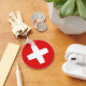 The flag of Switzerland has been deftly fitted to the circular fob of this keychain. A handy reminder of Swiss heritage.