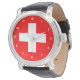 The flag of Switzerland (German: Schweizerfahne; French: drapeau de la Suisse; Italian: bandiera svizzera; Romansh: bandiera de la Svizra) displays a white cross in the centre of a square red field. The white cross is known as the Swiss cross.
