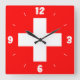 Switzerland National Flag Patriotic Square Wall Clock with the country flag in the national colors printed all over the clock. Clock numbers in matching colors are placed over the flag colors. This dazzling design is the perfect gift and the great show piece on the wall. © CountriesOfTheWorld