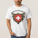 Cool crest design with national flag of Switzerland colours and caption: Switzerland. Great Swiss pride gift.