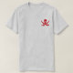 The iconic Jolly Roger pirate flag symbol with crossed swords - full size on the back and repeated on the front "pocket". In red on any background you choose!