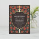 Invite your wedding guests with this Royal Sword & Shield Mediaeval Fantasy Monogram design. This design is perfect for couples seeking a regal, yet modern-day mediaeval fantasy aesthetic. Personalise the text, font, and colours to suit your design preferences. Matching Items in our shop for a complete party theme. Design is not real foil.