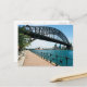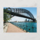 Walking on the path that leads beneath the Sydney Harbour Bridge in Australia. Cityscape of Sydney behind.