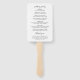 Modern wedding program hand fan featuring a contemporary typographic design with the headers in elegant script typography along with your details in a simple and minimal layout. The colour theme is black and white and may be changed the design editing tool.